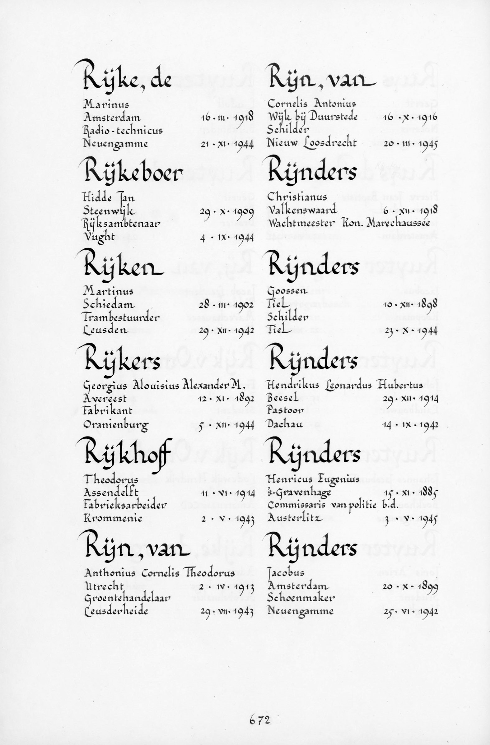 Ik stopte bij de naam Martinus Rijken, geboren op 28 maart 1902 en zijn beroep was trambestuurder. Waarom werd deze trambestuurder gefusilleerd op 28 december 1942 in Kamp Amersfoort? Ik ging op onderzoek. Ik kwam er achter dat hij in Schiedam geboren was en dat hij in het verzet zat. Ook kreeg ik een lijst te zien, waar zijn naam, geboortedatum, beroep, datum van overlijden en de plaats waar hij overleed op stond. (zie hieronder)