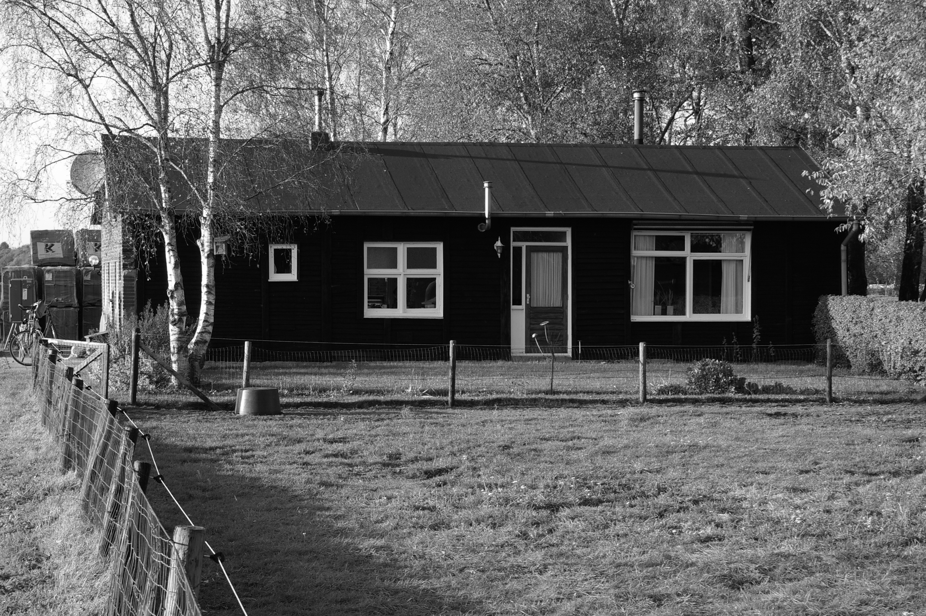 ‘Er zit een muur in gemetseld, maar dat was al zo toen wij er in kwamen wonen. Wij doen niets meer aan de barak. Wat ons betreft gaat de barak gewoon plat, maar we werken graag mee aan het plan van het HKO, die de barak graag wil behouden. Maar qua isolatie is het hopeloos. Het moet toen nog erger zijn geweest.’ Als het goed vriest hebben we het ijs aan de binnenkant van de ramen.
