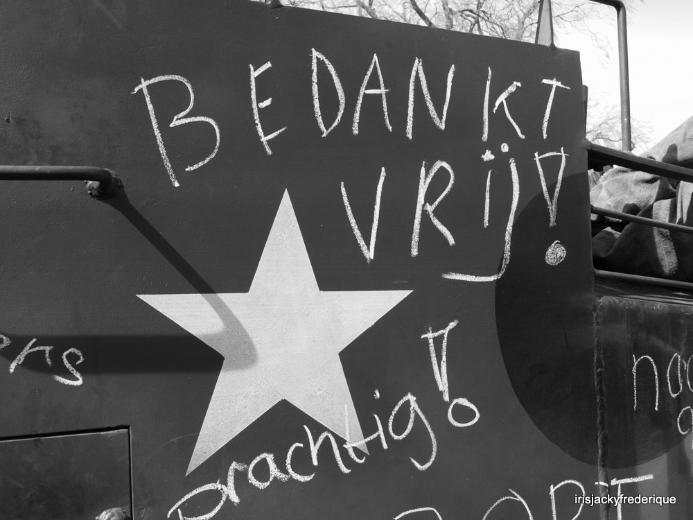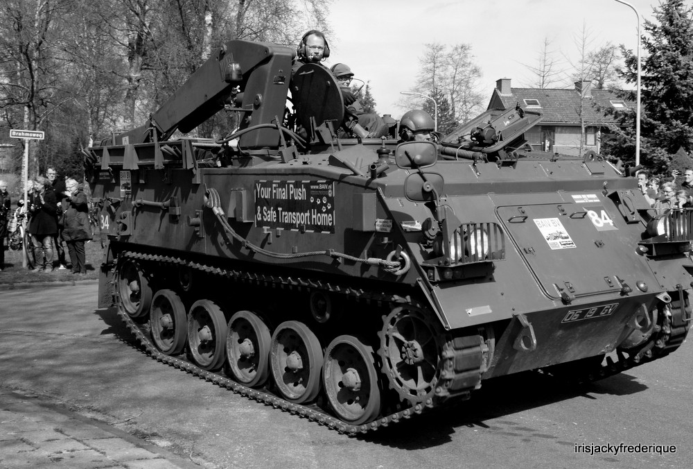Voor veel verhalen heb ik een reis moeten maken, maar deze keer was een stukje oorlog wel heel dichtbij. In mijn eigen dorpje, Eelde-Paterswolde, stonden vanmiddag bijna 200 historische legervoertuigen. Deze legervoertuigen hoorden bij The Final Push, ook wel de bevrijdingstocht. De tocht begon op 27 maart en is vandaag geëindigd in kamp Westerbork. Vandaag is het precies 70 jaar geleden dat Kamp Westerbork bevrijd is. Hierover volgt nog een post.